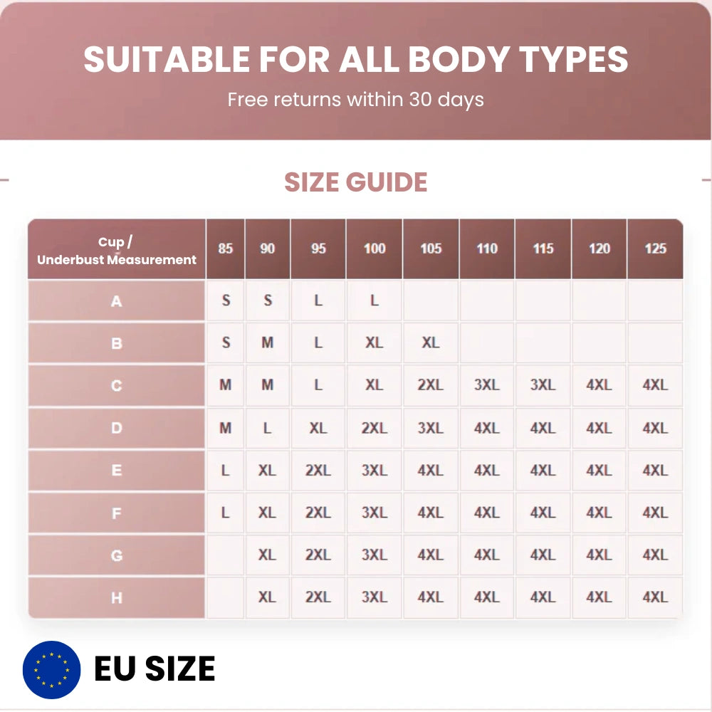 The patented 3D technology applies targeted pressure that naturally supports and lifts the bust while improving posture. Thanks to the ergonomic design, the weight is evenly distributed, reducing pressure on the back and shoulders.