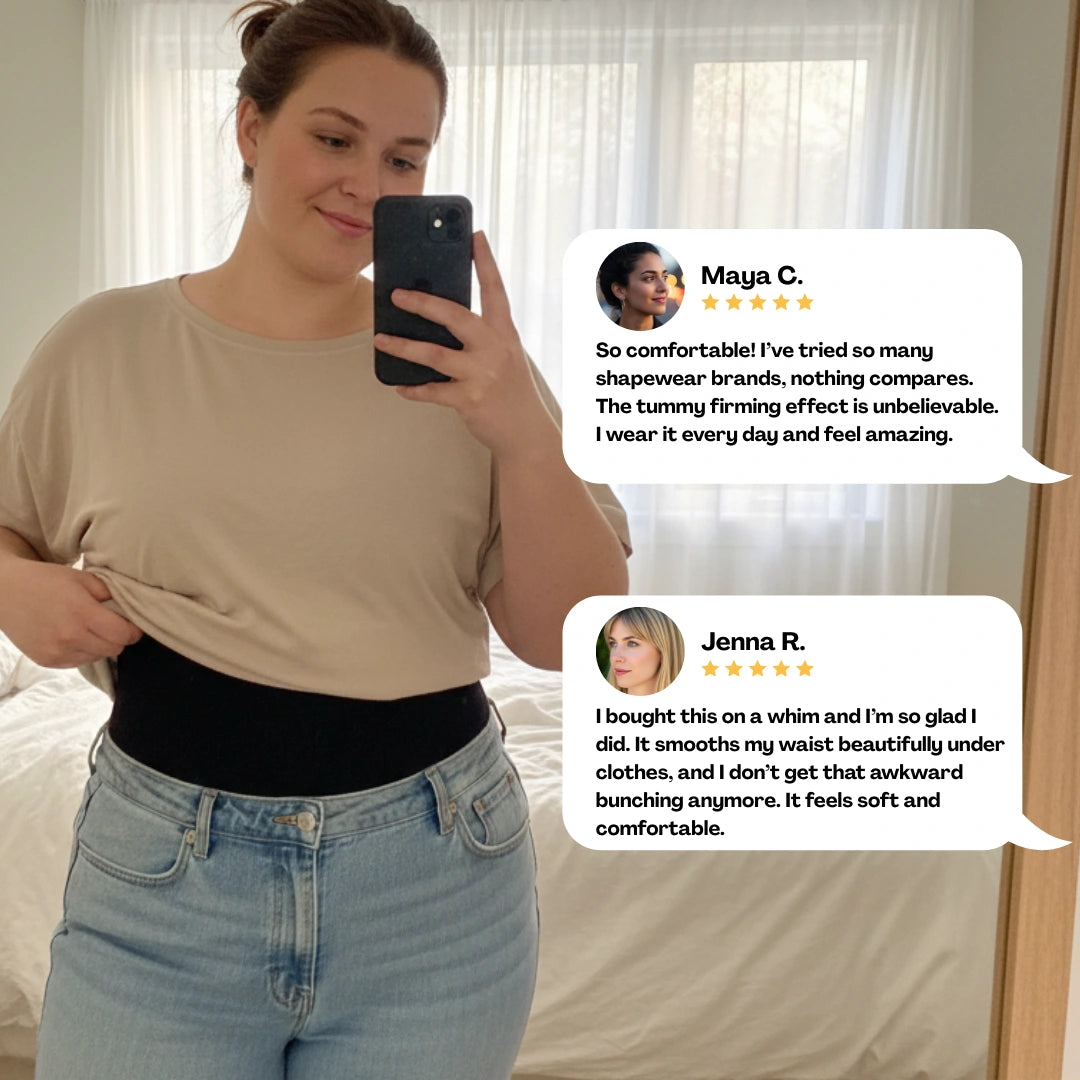 Our shapewear is designed with a high waist that provides full coverage and maximum support for the tummy, comfortably sitting above the navel.